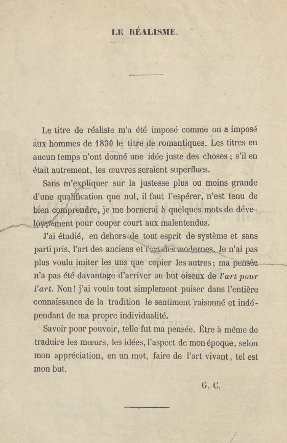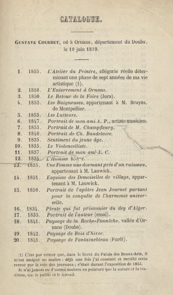 Préface du catalogue de l’exposition Courbet de 1855 :