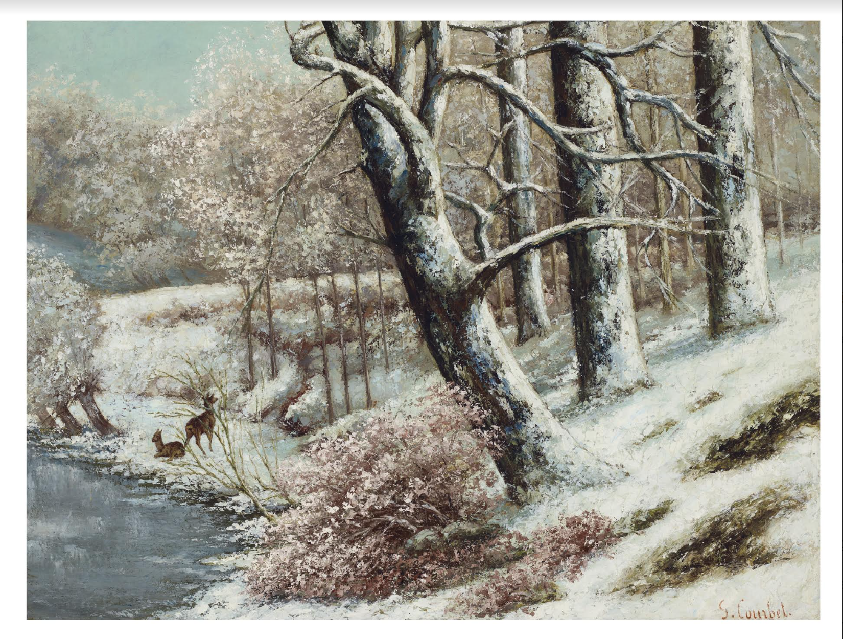 La maison de vente aux enchères présente trois huiles sur toile dont un superbe paysage de Neige de Gustave Courbet. Il est estimé entre USD 800,000 – USD 1,200,000.